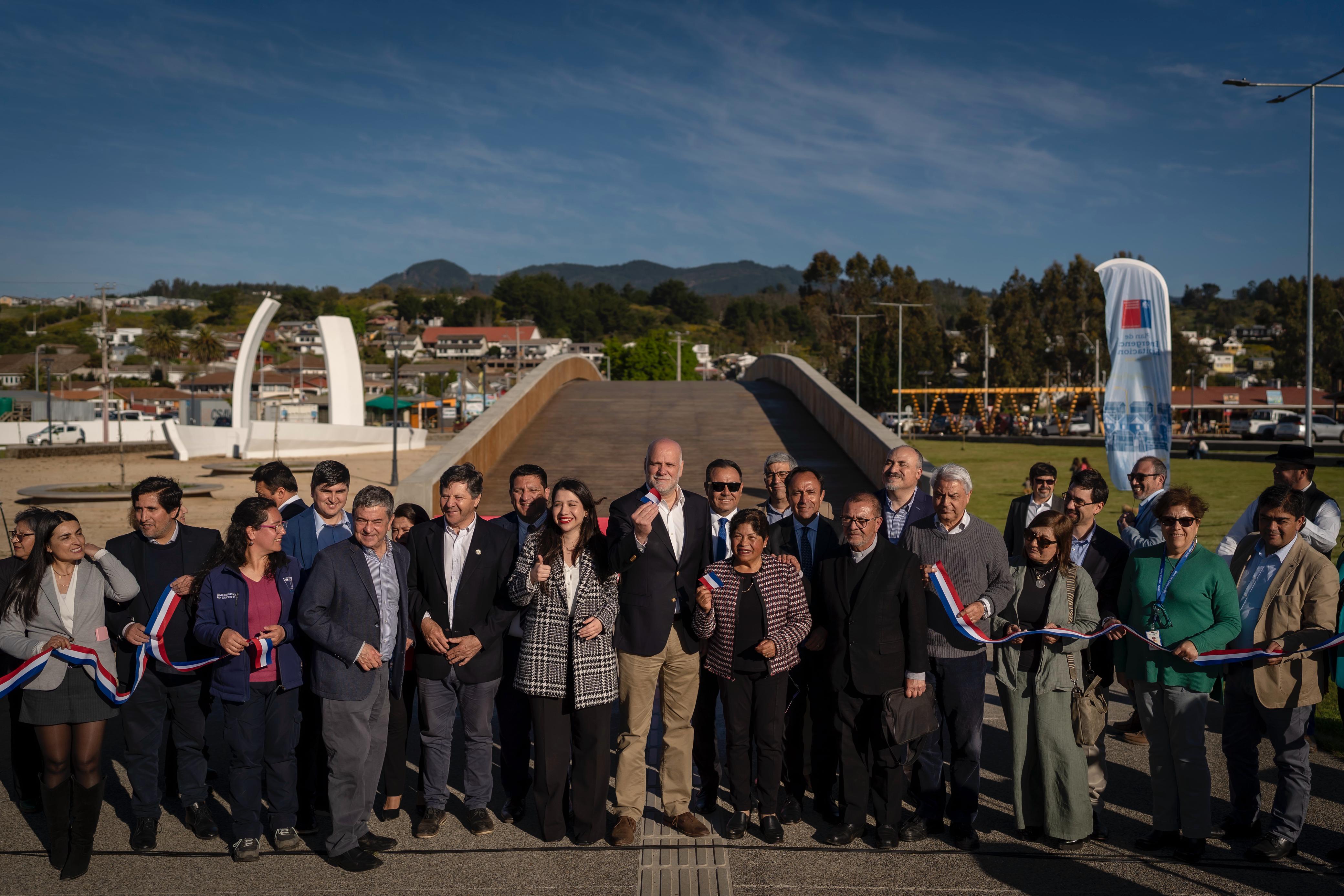 Un área de juegos visualmente controlada, una nueva zona de ejercicios y una multicancha con cierre perimetral son parte de las obras de renovación de la plaza, las que complementarán a la cancha de skate que fue conservada. Además, se construyó un puente peatonal que conecta la localidad y la costa de Curanipe, lo que permitirá fortalecer la identidad local y dinamizar la vida comunitaria y económica del sector.